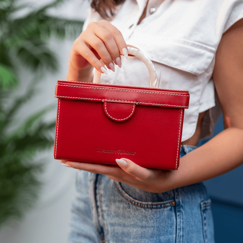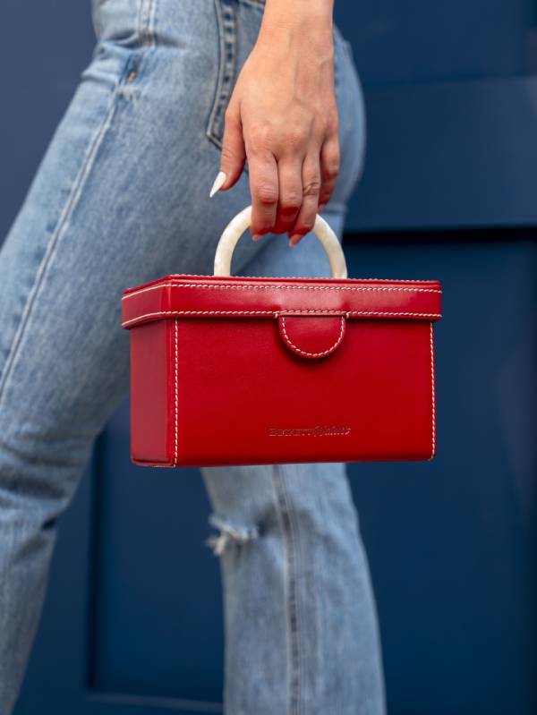 This vibrant red edition embodies confidence, passion, and presence. Designed for the woman who carries her story with strength, it is a striking companion for evenings of celebration and moments that demand sophistication. Crafted in rich twill Santa Claus red leather, it balances daring elegance with timeless Beckett Walcott refinement.